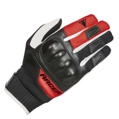 Rövid kialakítású, kényelmes, protektoros textilkesztyű bőr betétekkel.