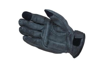 Ultrapuha, vintage szürke marhabőrből készült rövid, stílusos motoros kesztyű.