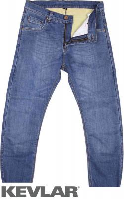Kevlár erősített motoros farmer CE minősített térd protektorokkal. A térdprotektor helyzete állítható, így beállítást követően, mindenkinek tökéletes helyre kerül a térprotektor 100% DuPont ™ KEVLAR® a csípő-, fenék- és térd részen. A kevlár erősítés nagy sebességű csúszásnak is tovább áll ellen , mint a hagyományos farmer anyag! SAS-TEC SC1/CP2 csípővédőnek kialakított hely.